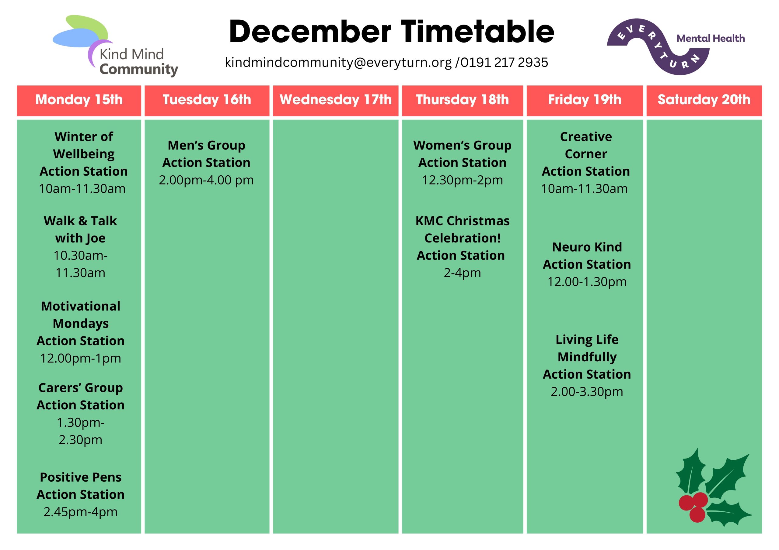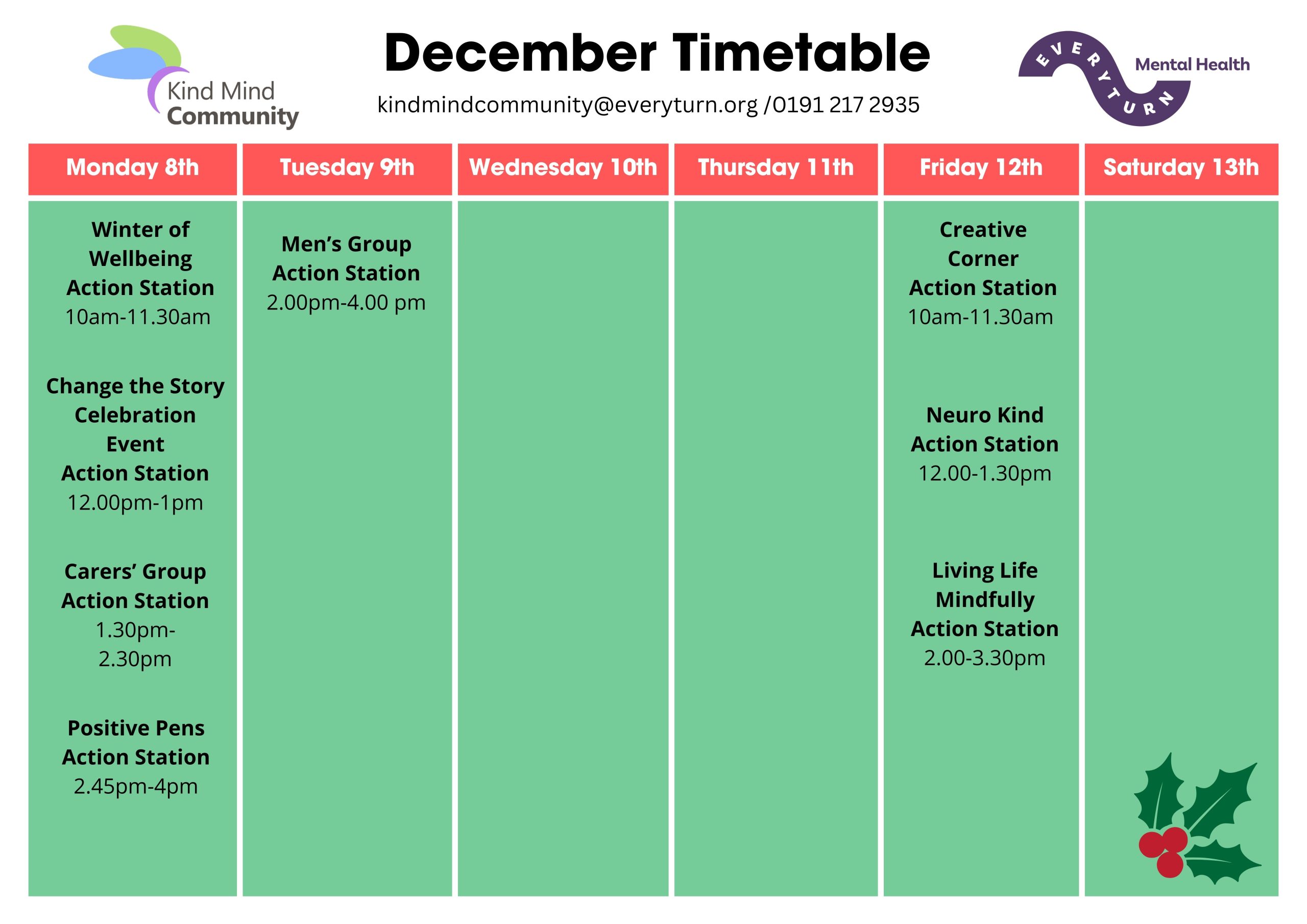 Interested in any of our courses or groups? Enrol here or contact us at KindMindCommunity@Everyturn.org or on 0191 217 2935.