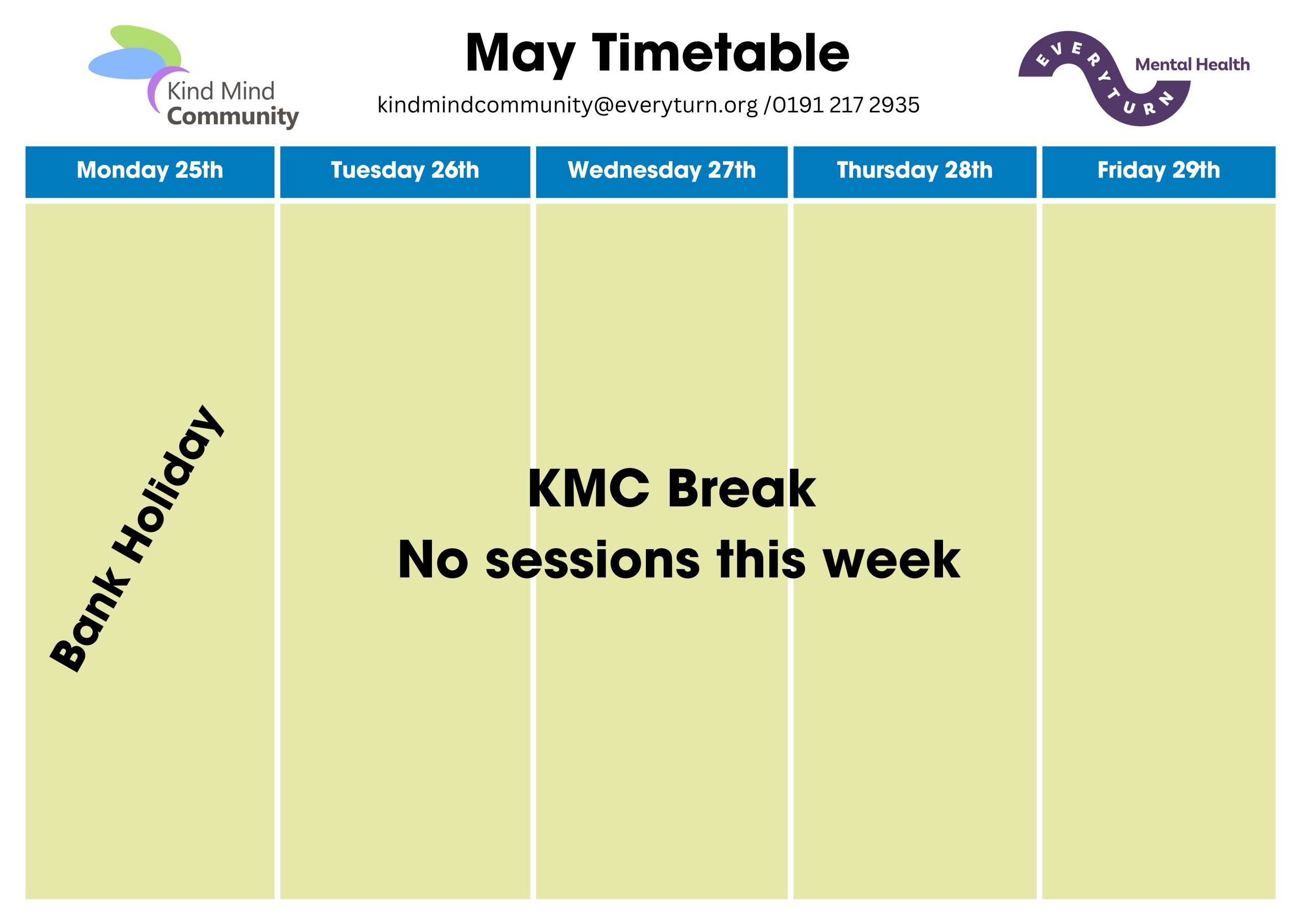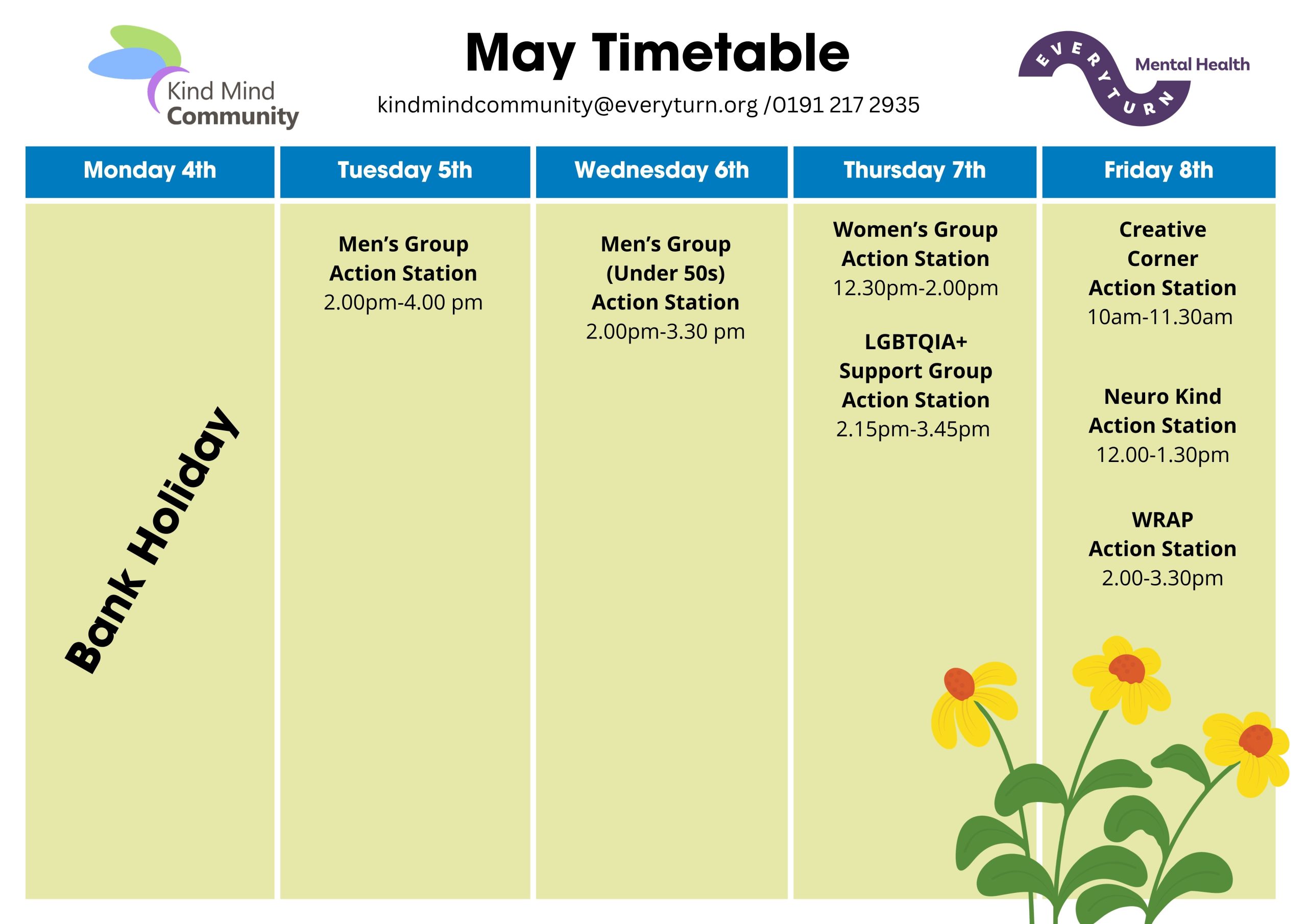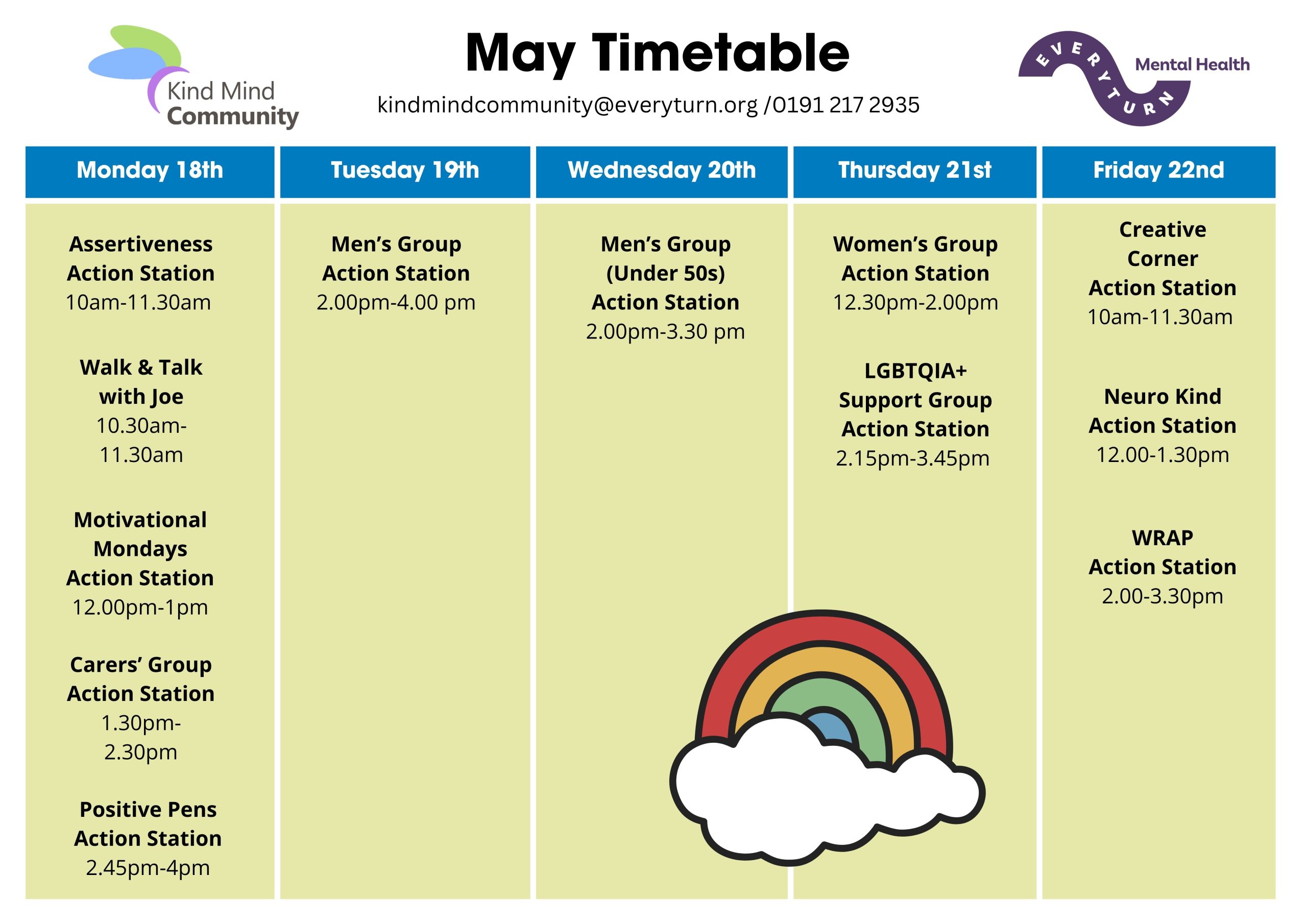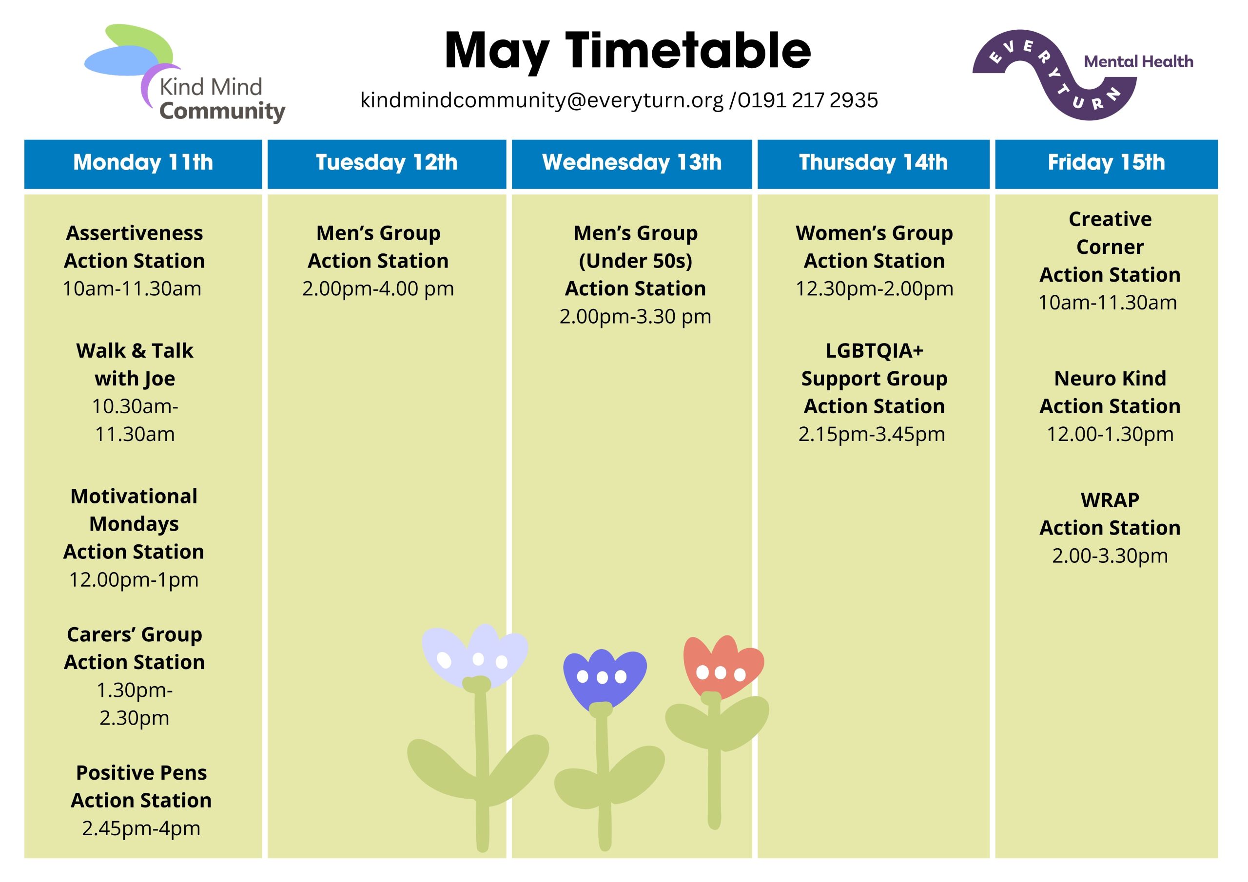 Interested in any of our courses or groups? Enrol here or contact us at KindMindCommunity@Everyturn.org or on 0191 217 2935.